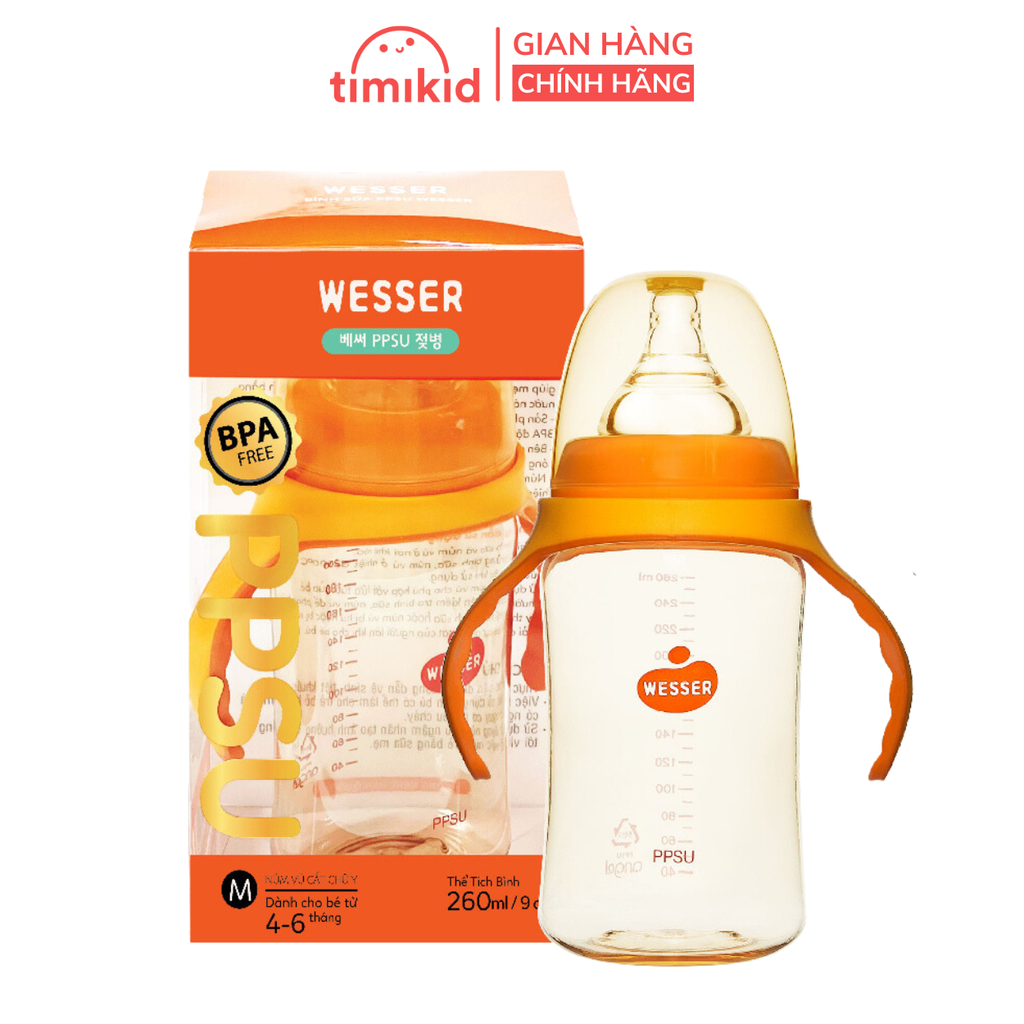 Bình sữa PPSU WESSER là sự kết hợp giữa thiết kế đột phá và chất liệu cao cấp, an toàn. Chất liệu nhựa PPSU có màu mật ong tự nhiên, đang được ưa chuộng và là lựa chọn hàng đầu khi lựa chọn mua bình sữa cho bé bởi những đặc tính ưu việt mà chất liệu này mang lại.