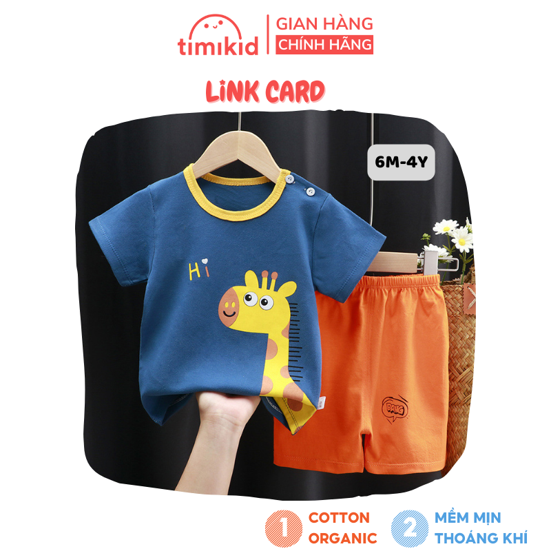 Bộ Thun Cộc Tay Cho Bé Trai Link Card K067 Cotton Mềm Mịn, Thoáng Khí - Bộ Thun Cho Bé Từ 6m-4y - Timikid