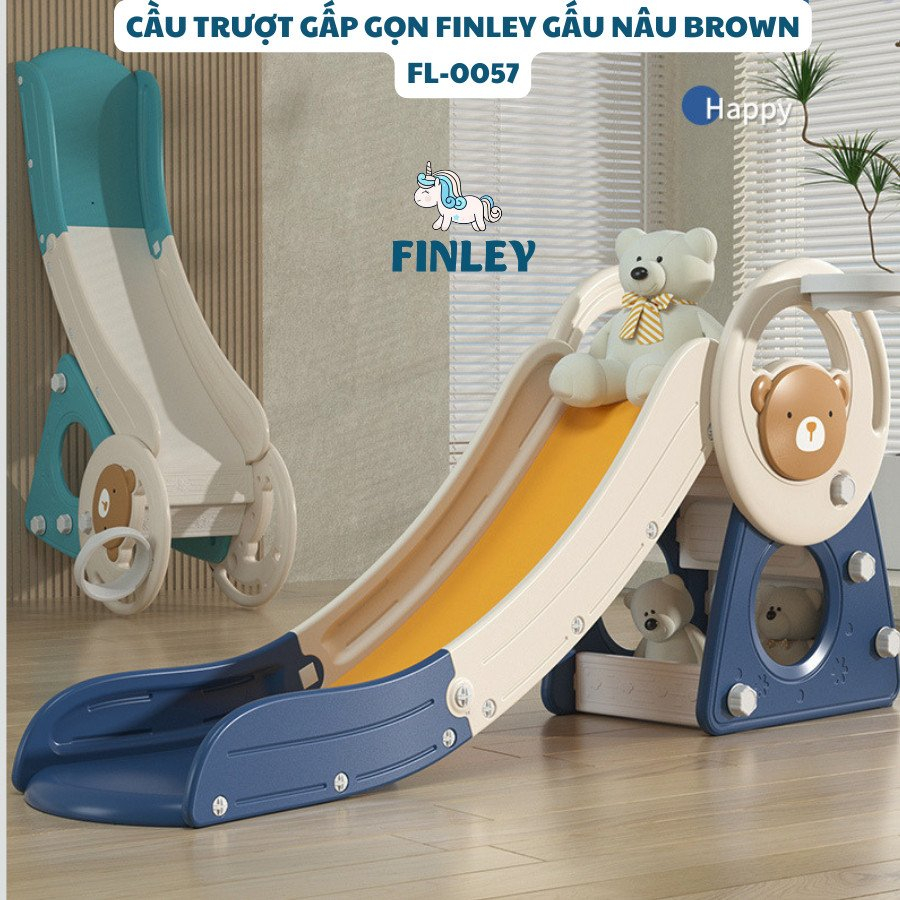 Cầu Trượt Finley Gấp Gọn Gấu Nâu Kèm Cột Bóng Rổ 2 in 1 Size Lớn FL-0057
