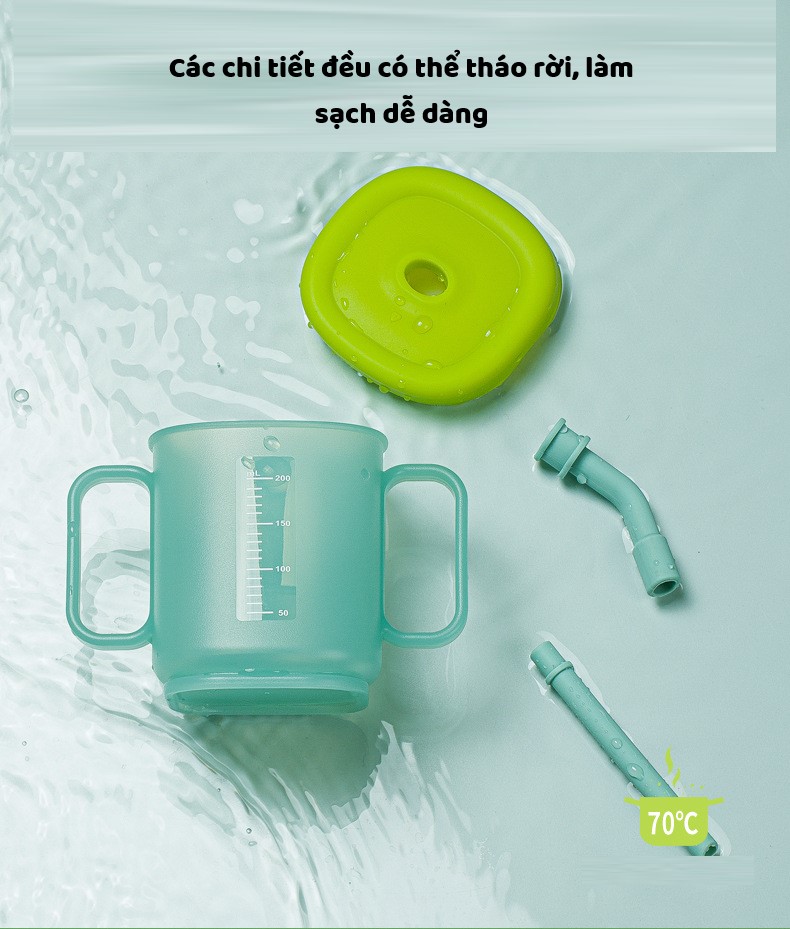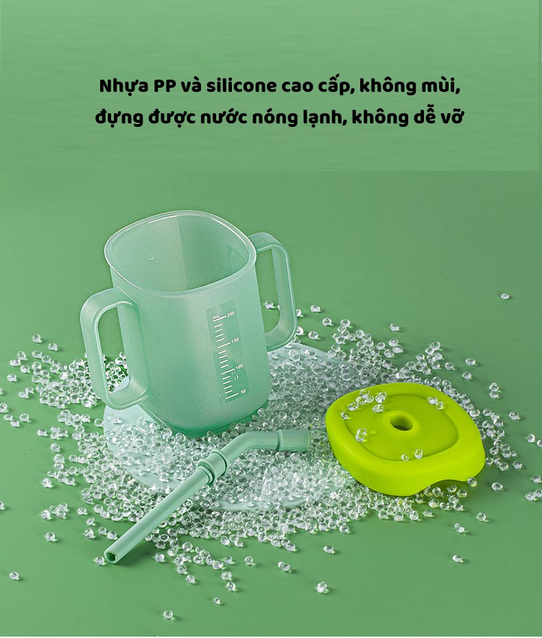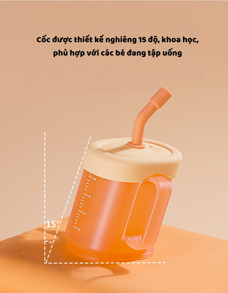 Cốc Tập Uống 200ml Thiết Kế Nghiêng Khoa Học - Có Tay Cầm, Bé Dễ Hút - Cốc Đa Năng