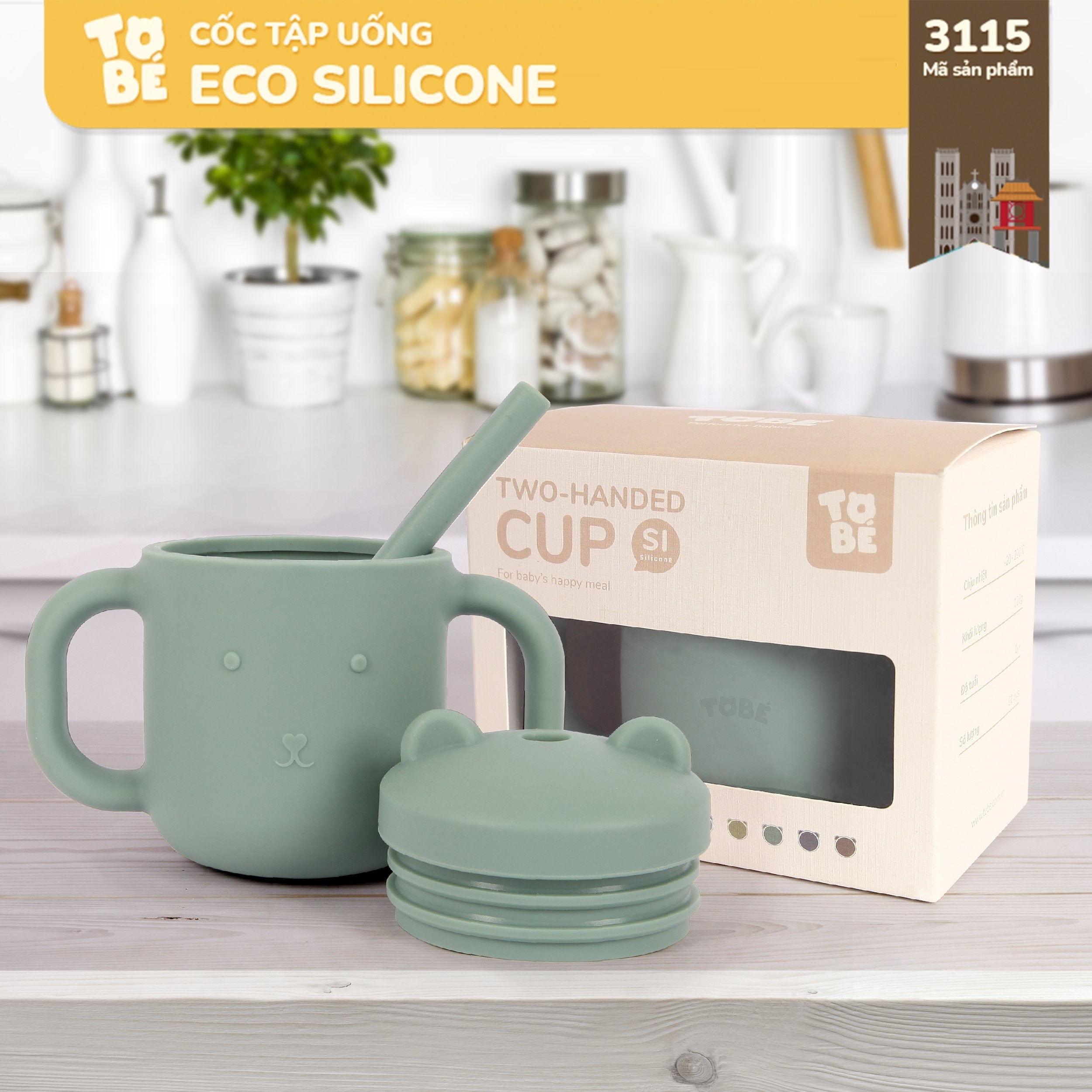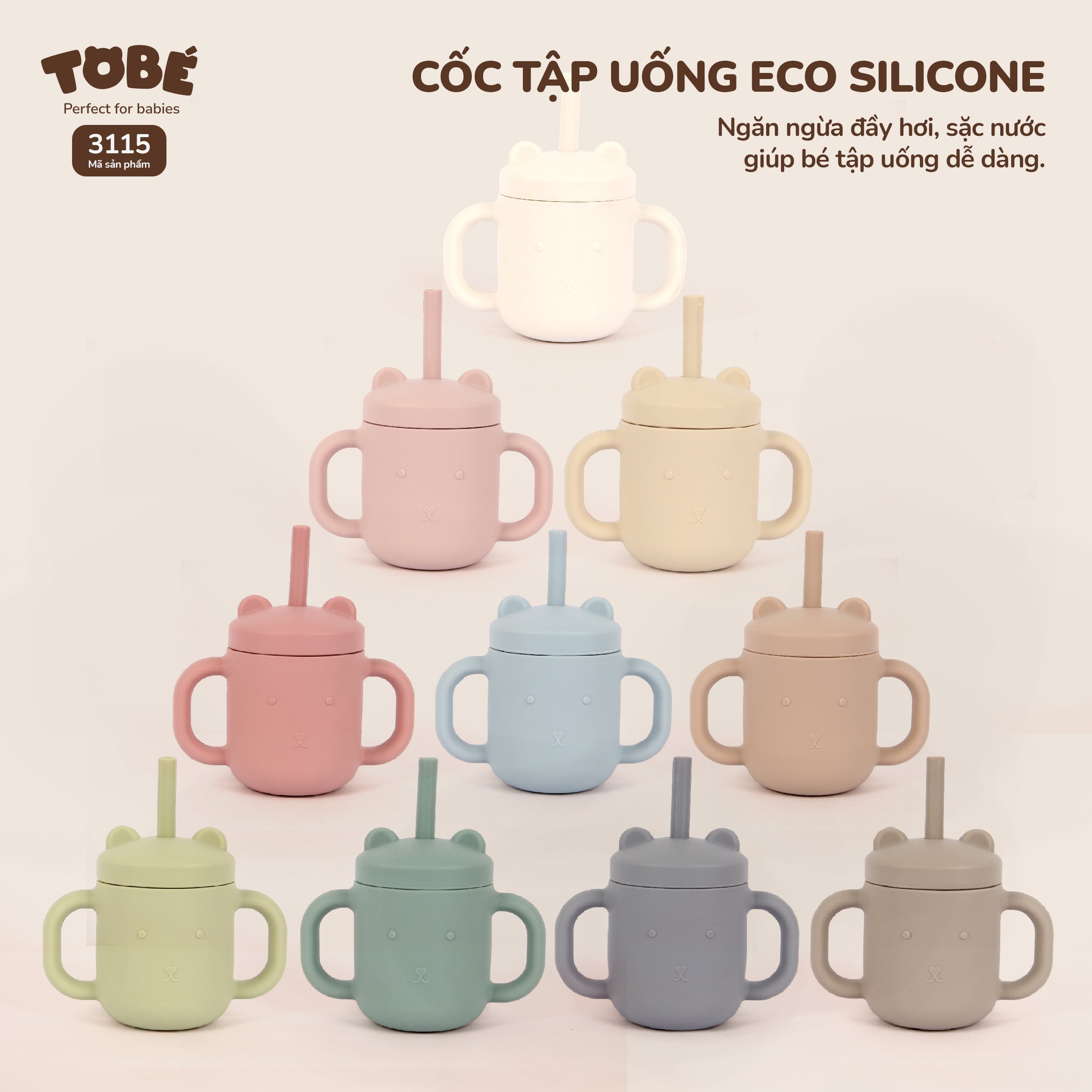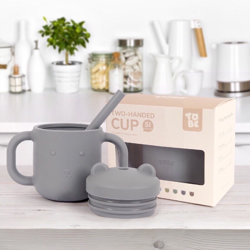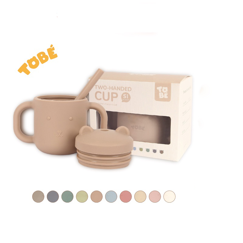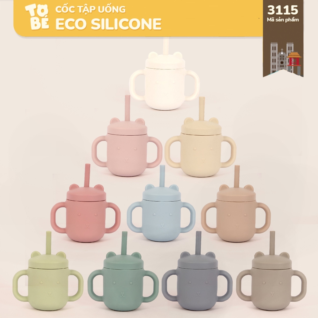 Cốc Tập Uống Silicone thương hiệu Tobé 10 màu kèm ống hút cho bé