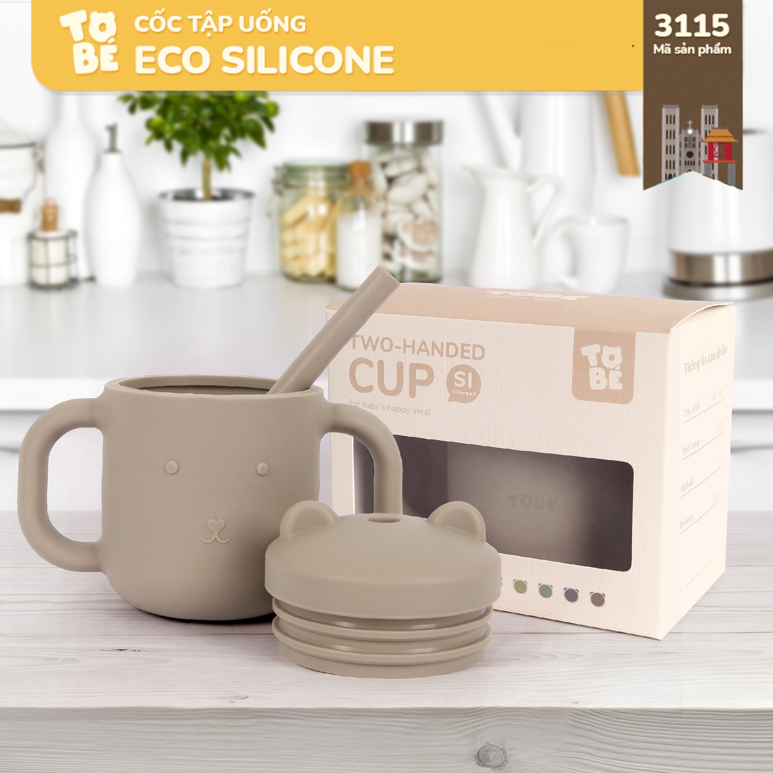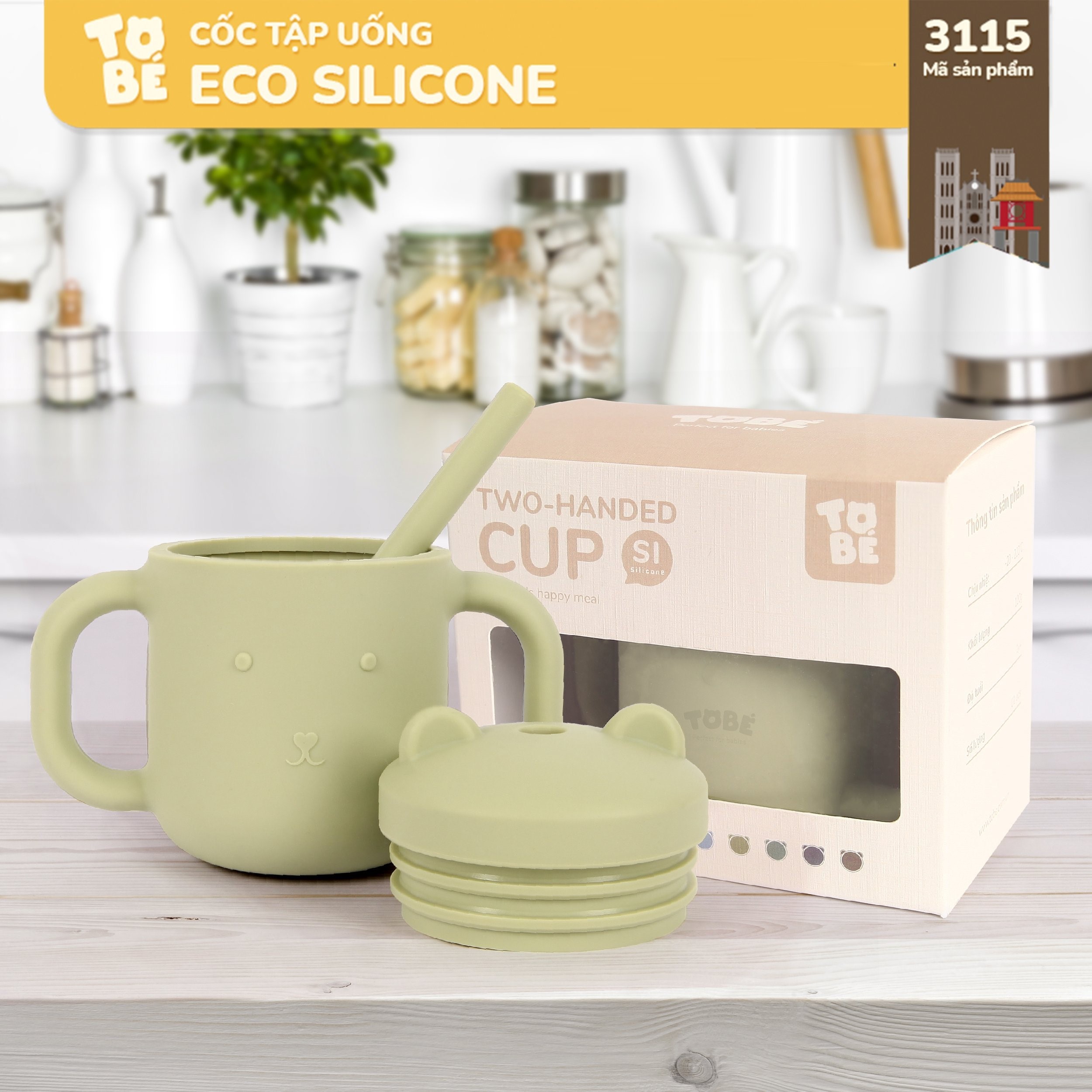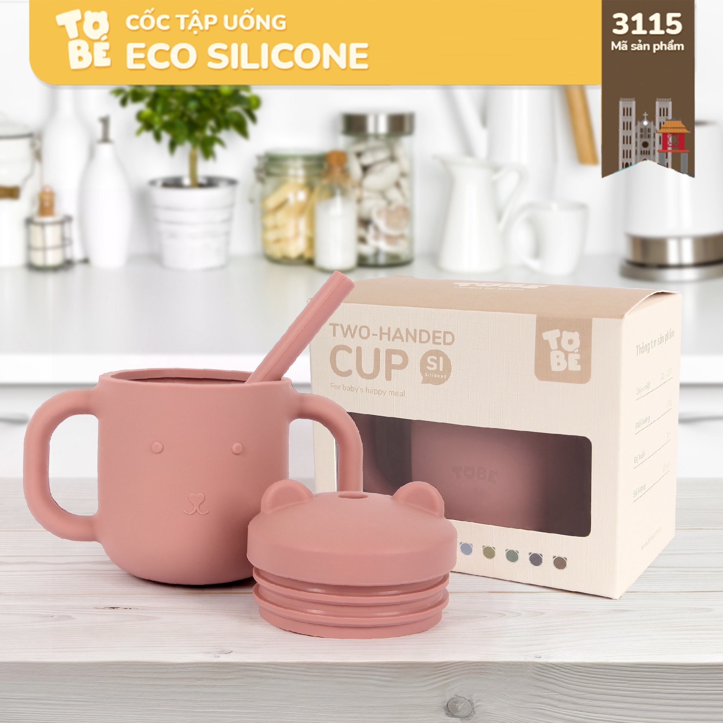 Cốc Tập Uống Silicone thương hiệu Tobé 10 màu kèm ống hút cho bé