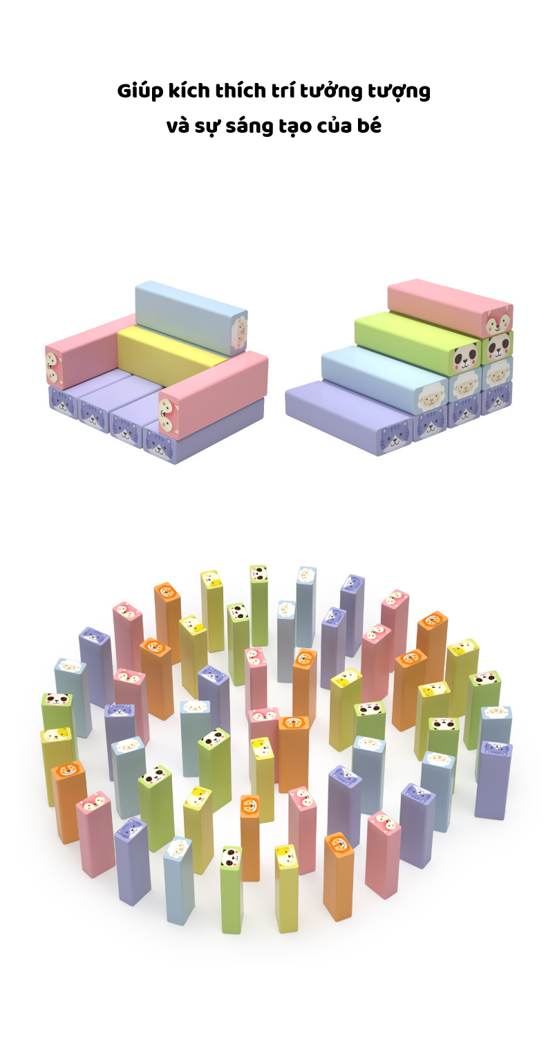 - Các khối gỗ màu sắc cùng hình các con vật đáng yêu kích thích thị giác giúp bé khám phá thế giới của các loại màu sắc và các con vật khác nhau.