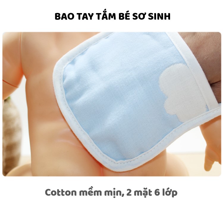 Khăn Tắm Đa Năng, Bao Tay Tắm Cho Bé Sơ Sinh Cotton 2 Mặt 6 Lớp Mềm Mịn