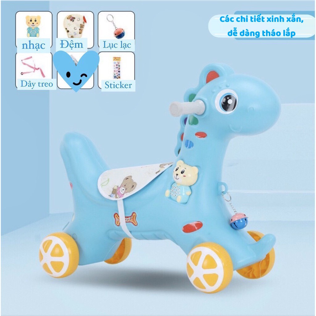 Ngựa Bập Bênh Cho Bé Yêu, Xe Ngựa Kiêm Chòi Chân 2 in 1 Có Nhạc Cho Bé 2 Màu Xanh Hồng