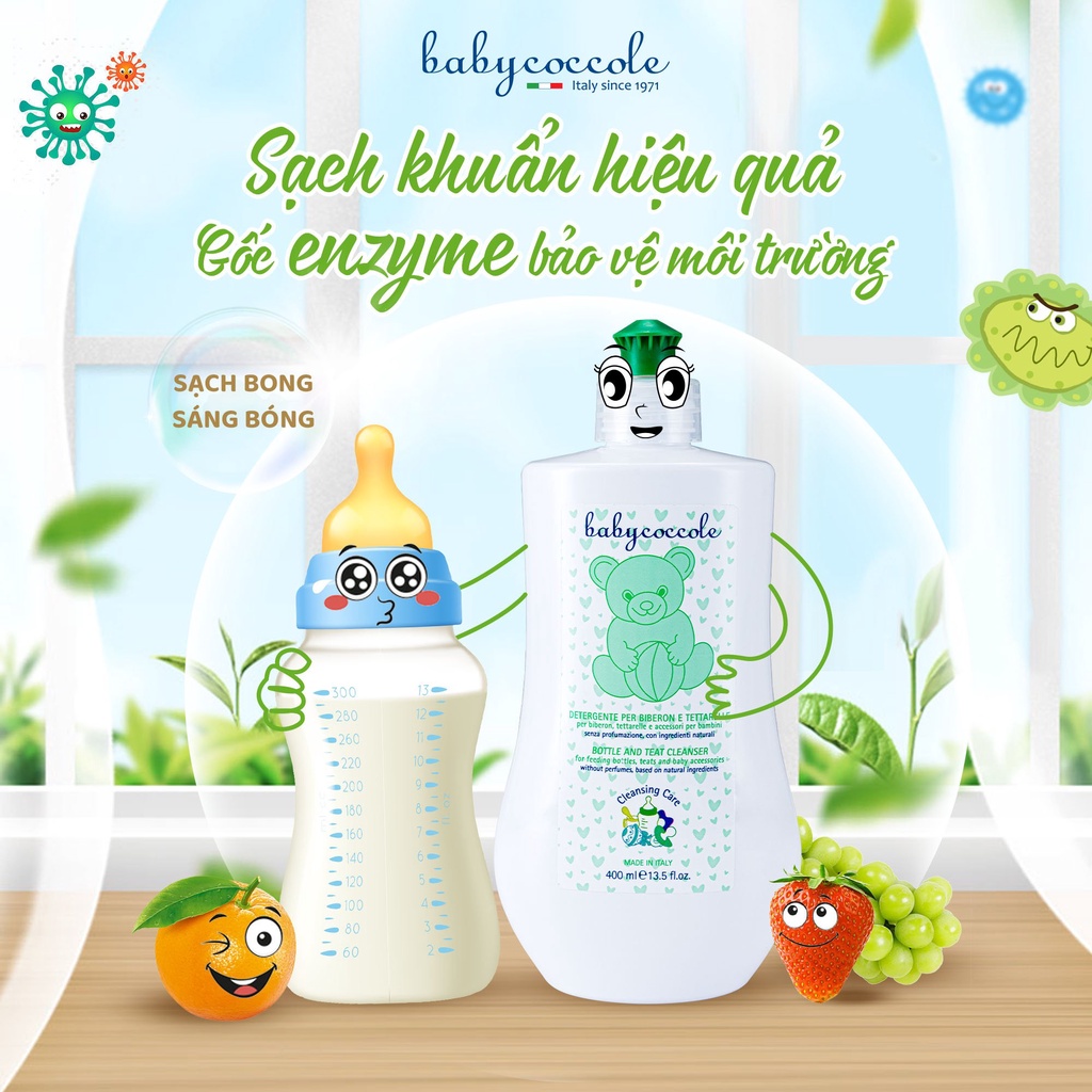 Nước Rửa Bình Sữa, Hoa Quả, Đồ Chơi Babycoccole Chiết Xuất Cỏ Xạ Hương Và Lô Hội 400ml