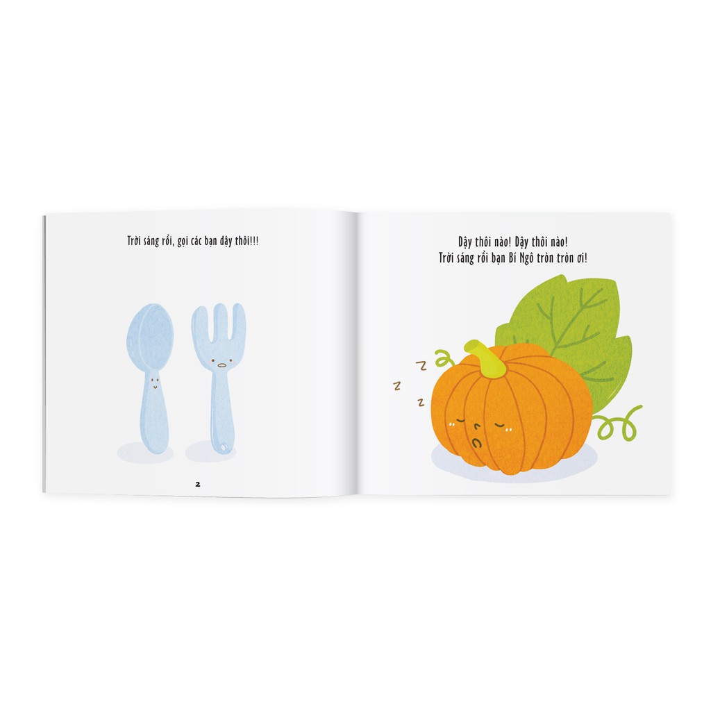 Mặc dù chúng ta đã ngủ rất sớm, nhưng đến buổi sáng, bạn nào cũng không thể dậy được để đi học. Trong cuốn sách “Thức dậy nào! Thức dậy nào!”, các bạn rau củ cũng vậy đấy. Các bạn rất thích ngủ nướng, nhưng nếu dậy muộn, chúng ta sẽ đi học muộn mất. Vậy là các bạn rau củ mỗi ngày đều đến nhà gọi bạn dậy “Thức dậy thôi nào!”. Khi tất cả cùng dậy rồi, các bạn sẽ cùng nhau đi trên chuyến xe buýt tới trường và cùng nhau đón một ngày mới thật là vui.