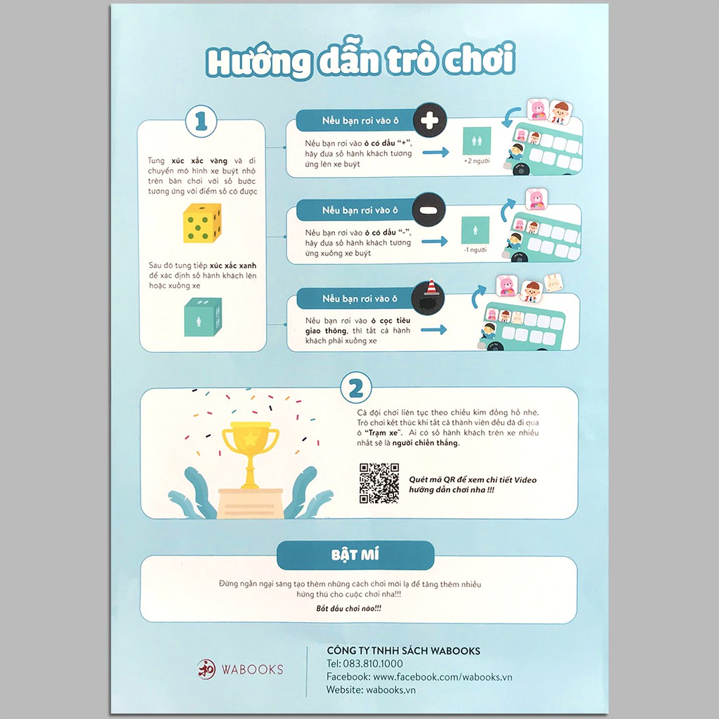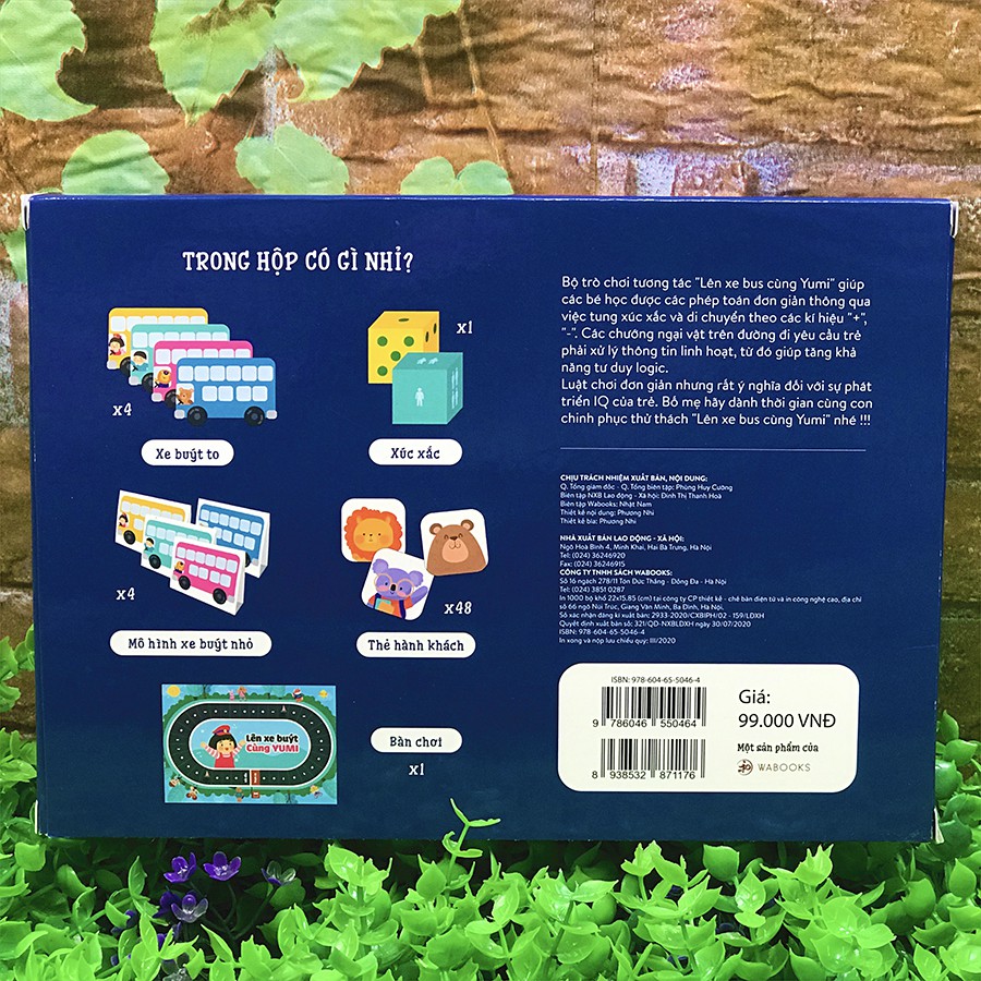 Luật chơi đơn giản, nhưng lại rất ý nghĩa đối với sự phát triển của trẻ, bố mẹ hãy dành thời gian cùng con chinh phục “Lên xe buýt cùng Yumi?” thôi nào! ---***--- Công ty phát hành Wabooks Tác giả Nhiều tác giả Ngày xuất bản 07-2020 Kích thước 15.85 x 22 cm Nhà xuất bản Nhà Xuất Bản Lao Động Xã Hội Loại bìa Bìa mềm Hình thức Bộ hộp gồm: 1 bàn chơi, 4 xe buýt to, 1 xúc xắc, 4 mô hình xe buýt nhỏ, 48 thẻ hành khách